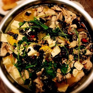 锅烧热下蒜姜煸香放入酸菜炒香,放入鱼头鱼骨炒至鱼变色倒入开水,下玉米,大火煮沸,改小火熬三十分钟,注意说一定要多,后加盐味精胡椒粉等调料,捞出鱼头鱼骨酸菜玉米放盆里,下鱼肉,鱼肉一定要一片片慢慢分散下,待鱼肉熟连汤带肉倒入盆中