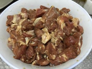 于是做好了 有条件的腌羊肉的时候可以拌个生鸡蛋进去 有姜的也可以放点姜