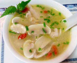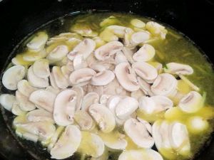 白蘑菇洗净切片(话说买这种白白净净的居然是漂白的,还是买带点土的好),姜切丝,葱白切段,葱叶切葱花,大蒜切末,枸杞