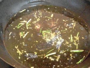 炒锅烧热放多点的油,烧热放入姜末,一半蒜末炒香
