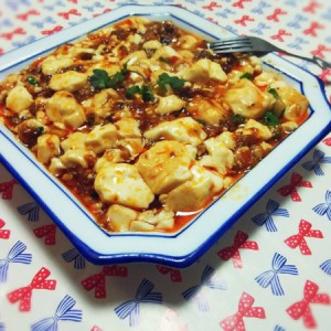 准备材料~ 牛肉沫 豆瓣酱 大蒜和生姜切末 青蒜叶切好 淀粉加6勺水搅拌均匀 豆腐切小块放盐开水里泡会捞出沥干水