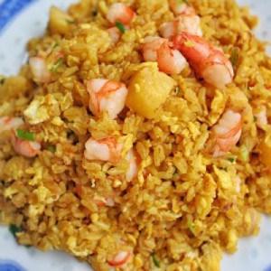 炒至虾变红后倒入蛋液,将饭炒干即可