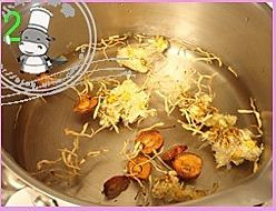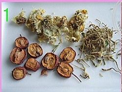 取适量干山楂片、干金银花、干杭白菊用清水冲洗干净;