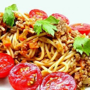 锅中倒入橄榄油,先放猪肉沫,炒至出油再放入牛肉碎。然后依次加入洋葱,胡萝卜,芹菜。番茄酱。炒制蔬菜差不多熟的时候,调入盐,胡椒粉,最后倒入红酒。