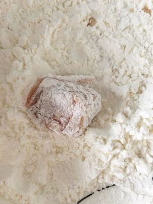 鸡腿肉加姜蒜泥,加料酒胡椒拌匀,腌制15分钟