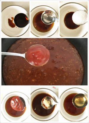 酱油、醋、糖、番茄酱、韩式辣酱、蒜泥、蜂蜜、水和匀,备用