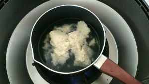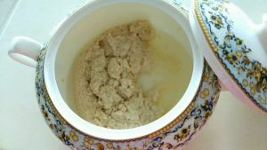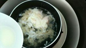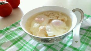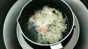 勺一小碗甜酒酿放小锅里,加水煮开,可放1片姜。