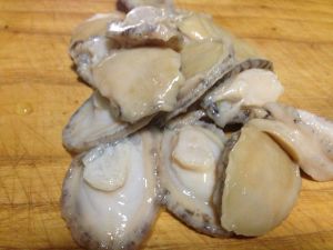 3、将鲍鱼表面打上十字花刀,注意不要把鲍鱼切断。