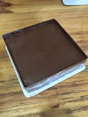 大概二十分钟后把第三步骤的夹心脱模放入冻好的第五步骤中,然后把多余的莫斯液铺满摸具,表面抹平,入冰箱冷冻。等成品冻好,取出,脱模,直接吃或做些装饰都可。