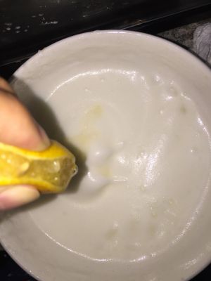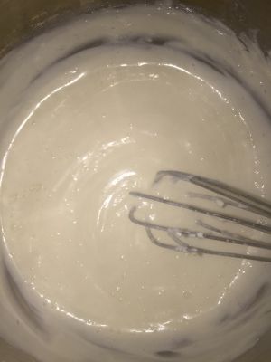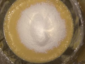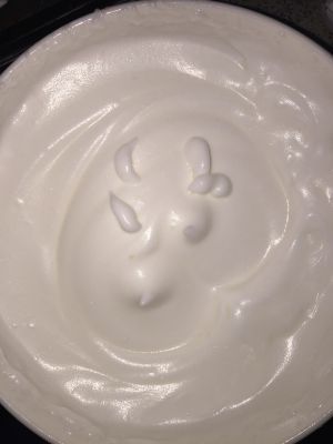 糖粉分三次加入蛋清,边打边加,泡沫细腻时加入柠檬汁。