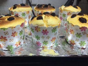 烤架垫上锡纸,将蛋糕糊倒入纸杯中,可以点缀点葡萄干。