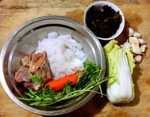 魔芋用清水冲洗一下沥干水份,准备好的原材料装入容器中