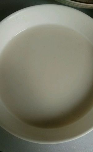 红薯粉兑水调匀,水适量,红薯粉越多蛋皮越滑。红薯粉不管是包饺子还是调水,整体都是偏黑的,这是我老家带来的,很纯正。