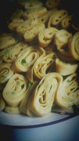摊完的蛋皮可像春卷一样裹肉蒸或者油炸