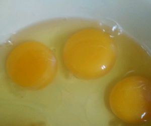 取三个鸡蛋,将蛋打匀备用