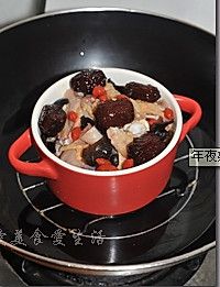 把发好的木耳、黑枣和腌制好的鸡混合在一起,撒上枸杞 一起上锅蒸,水开后半个小时左右就可以了