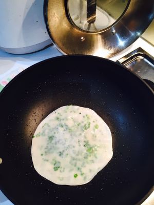 锅里放点点油,但是一定要放,不然成烤饼了。小火至金黄,记得反面。