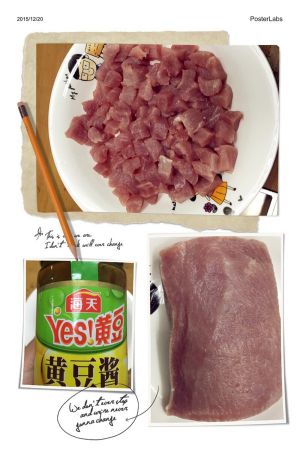 1.肉丁根据个人口味选择纯精肉或者五花肉。