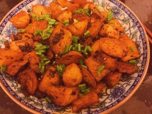 翻炒均匀按个人口味加入盐或辣椒。出国,撒小葱。