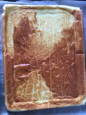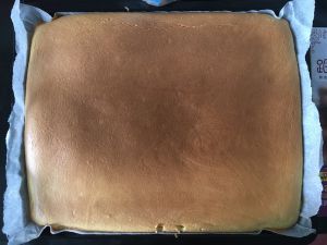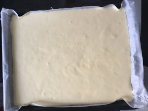 不需要准备专用烤盘,家中烤箱标配的盆子即可,将糊倒入,左右放均匀,稍微摇晃震一下