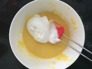 慢慢添加打发好的蛋白,承Z字和八字进行搅拌