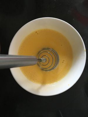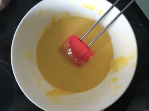 牛奶,油混合均匀,逐个添加蛋黄,拌匀