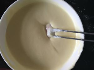 面粉过筛,与蛋黄糊搅拌均匀