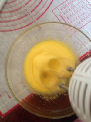 蛋黄加砂糖搅拌均匀用打蛋器打至顺滑,颜色变浅