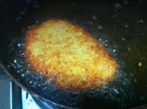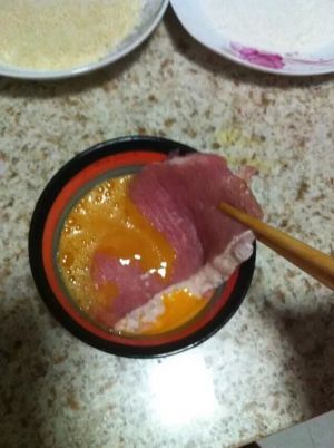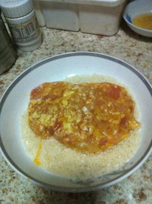 迅速再过一次蛋液,放在铺好的面包糠上。