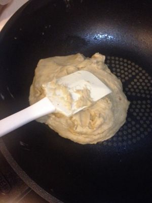 倒入不粘锅,边搅拌边用文火炒至不太粘的程度,这步最需要耐心啦。
