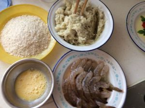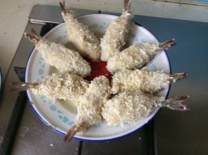 准备好面包糠,鸡蛋液,虾仁,土豆泥开始开锅。