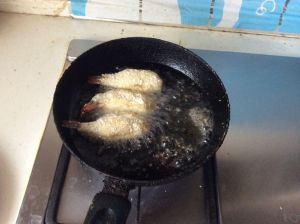 锅里放油,烧至5层热,放入虾球,煎至两面金黄即可。