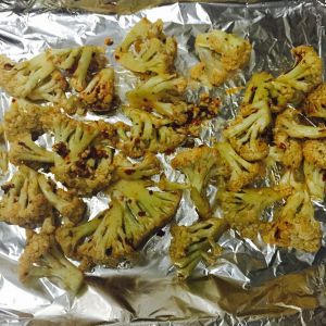 一道干香辛辣的烤菜花完成。没有烤箱的话用炒锅把腌制过的菜花煸炒也是可以的。