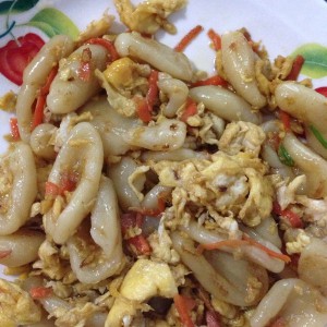 待蛋和胡萝卜丝炒一分钟左右,倒入猫耳朵继续,再倒入调料酱接着炒。等酱汁炒的差不多没了就可以关火装盘了。