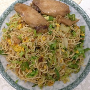 鸡蛋打散,放锅中略炒,盛出备用。锅中放油,放入姜丝,蒜片,煸炒,然后放入圆白菜丝,炒至透明状,下入炒好的鸡蛋和煮好的面,放入盐,鲜酱油调味,翻炒一两分钟即可出锅