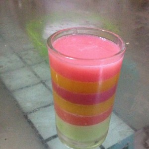 熔化好的Q糖稍凉加入适量牛奶搅匀,倒入杯子,保鲜膜封口,放入冻箱软冷冻