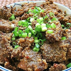 最后加入一大勺豆瓣酱。再加少许水,使粉湿润。