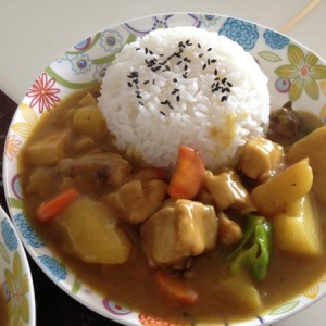周围浇上咖喱鸡即可。真的好好吃啊~~~