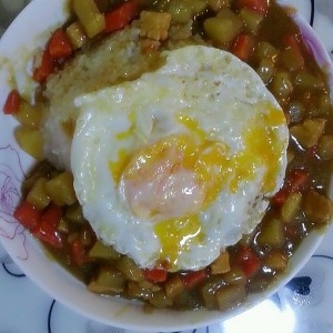 米饭+咖喱鸡+一颗煎好的鸡蛋!一顿饭就解决了!