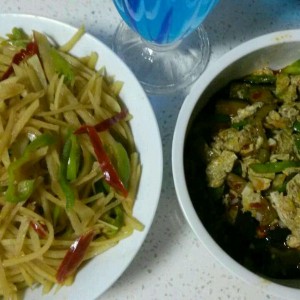 油热后依次放入肉丝、土豆丝、干辣椒丝翻炒,炒到5分熟时加入醋、料酒、盐适量,一起翻炒,炒熟后装盘,开吃。