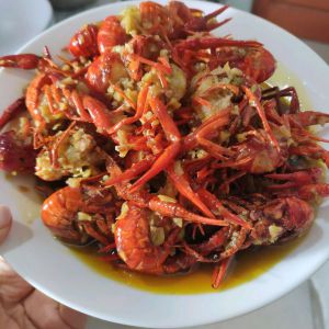 炸香,放龙虾,再放生抽,醋,糖,盐,放半罐啤酒稍稍煮会。