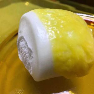 刀切馒头自然解冻后,将芝士片切成馒头大小,覆盖在馒头上