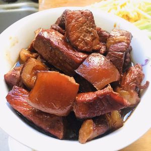 水开煮1~2分钟,加盐,盖盖儿,留点缝儿,最小火约一个半小时,水最好一次加足,中间不要加水,如果你发现水干了肉还不烂那一定加开水千万别加凉水。如果肉烂了还有很多汤汁那就开大火收汁,直至汤汁浓稠肉烂即可
