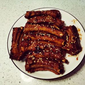 出锅撒上白芝麻点缀。真不是吹得,味道特别棒,轻轻一咬一转,排骨上的肉就瞬间入口了。酸酸甜甜但是又不腻,家属一口气吃光了呢!
