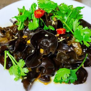 黑木耳泡发后汆水约3分钟,捞出,放入玻璃碗内(可以过一遍冷水)。