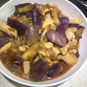 倒入勾好的汁,翻炒收干点汤汁,加点葱