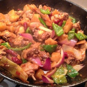 大火翻炒两分钟后加入一瓶啤酒,这是大盘鸡是否正宗的关键。