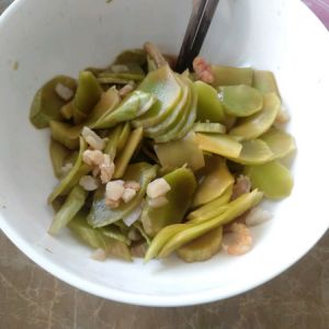 取10-15个左右开洋,开洋就是晒干的虾仁,本身用盐腌制过的。各地可能叫法不一样。同样放凉水盖没浸泡,也可以用黄酒泡,就看个人是不是接受这口味了。也是最好提前一晚上,要是时间不够,半天也需要的。
