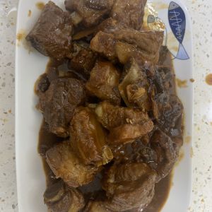 炖到25分钟左右放入盐,出锅前5分钟放醋,还加了一包麦当劳番茄酱。50分钟左右盛出来的。