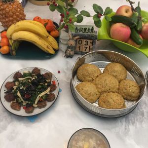 先把黑木耳冷水泡发,熬上银耳白果羹(最近几次熬银耳都是先冷水泡发银耳一个小时后,单大火煮银耳白果二十分钟左右熄火、停一段时间在煮开,依次放入雪梨红枣糯米百合冰糖,小火炖煮半小时以上,保证出胶、好喝;胡萝卜洗净,用擦丝器先擦成丝,在切成碎末,放入容器中,加上玉米面粉用滚开的开水烫面后,用筷子搅拌成絮状,在依次加入五谷杂粮面粉、普通面粉,比例为:2:1:0.5……(五谷杂粮粉是我妈妈用各种五谷杂粮打出的面粉,很香)今天拍图没那么详细,因为做之前并没有想写菜谱,但是做好后,忒好吃,幸亏有几张图,我相信吃货的领悟能力铁定超强✌️……言归正传:酵母粉提前温水(不要超过50度)化开放置两分钟,倒入棉絮状的容器中,徒手揉成光滑的面团,大锅内加水煮到五十度左右,把揉好面团醒发一小时左右……就算不醒发,直接做成窝窝头也是好吃的,不过我今天做的这个,发面型的“窝窝头”里面要包前两天做绿豆黄豆馅儿面包剩下的馅儿……